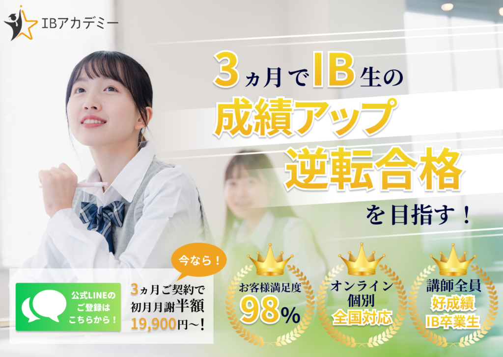 About Linksenpaiは小学生から高校生向けの グローバル教育に特化したオンライン家庭教師塾です。 国際バカロレア専門家庭教師 海外大学入試対策 TOEFL/TOEIC対策 AO入試対策 オンライン英会話教室 IBアカデミー 対象:小学生~高校生 国際バカロレアプログラムの入学から大学受験まで一貫して サポートするIB特化の家庭教師サービスです。 IBスコア40点超え取得のIB卒業生が 進路で迷っている・苦しんでいる生徒様やご家庭の道しるべとなるようなサポートに全力で取り組んでおります。 YouTubeチャンネル 国際バカロレアについて卒業生が発信しています
